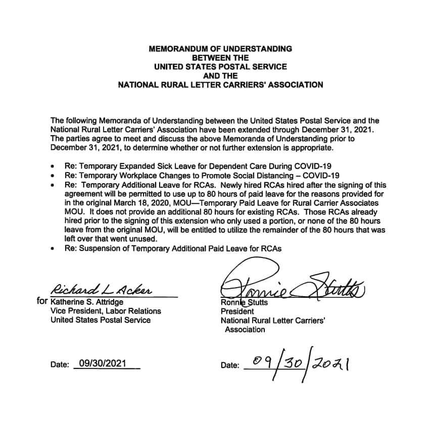 - MOU-Temporary-Paid-Leave-Rural-Carrier-Associates-(RCA)-COVID-19.pdf541.92 KBPreviewAugust 31, 2025Downloads: 447Historical