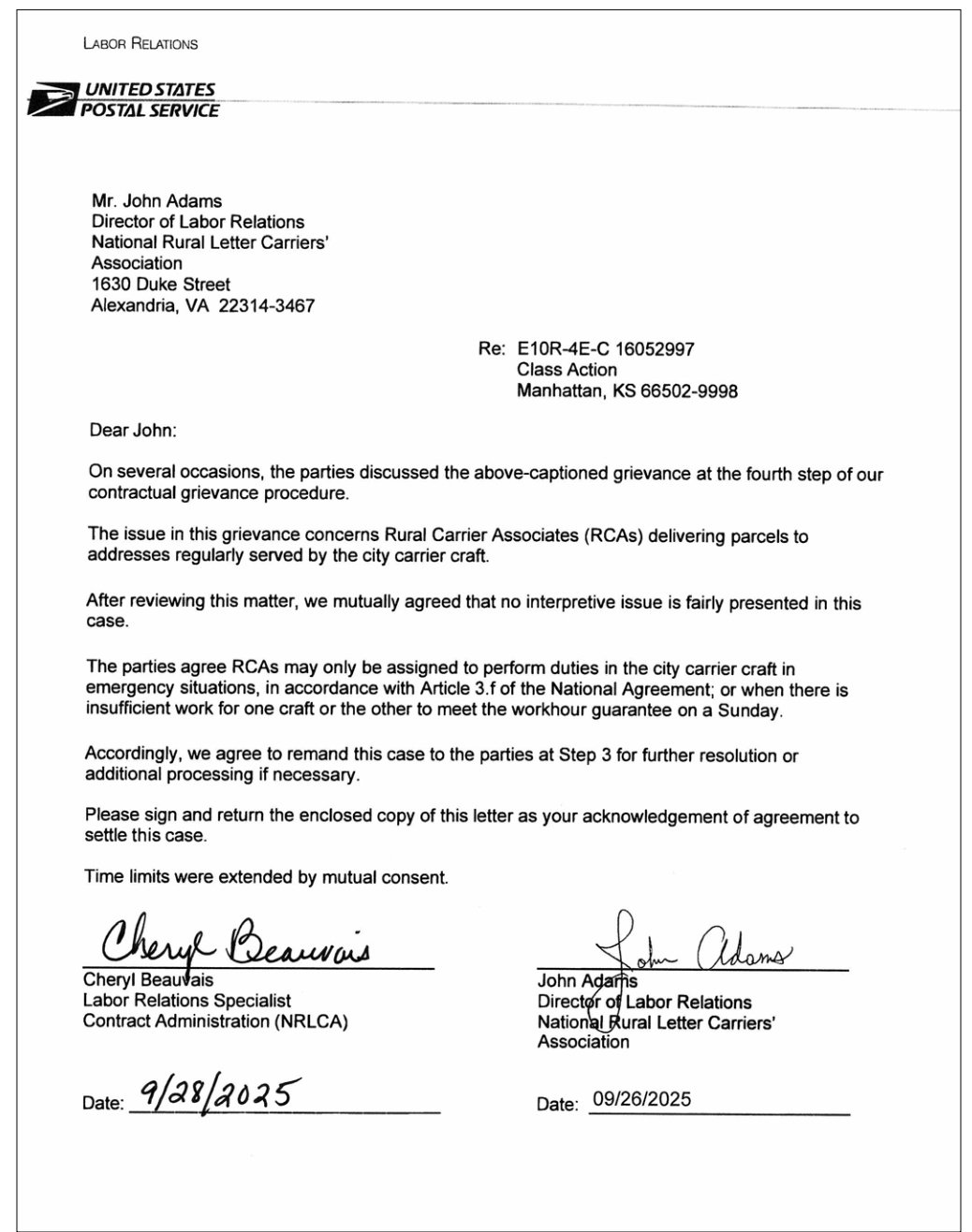 On several occasions, the parties discussed the above-captioned grievance at the fourth step of our contractual grievance procedure. he issue in this grievance concerns Rural Carrier Associates (RCAs) delivering parcels to addresses regularly served by the city carrier craft.